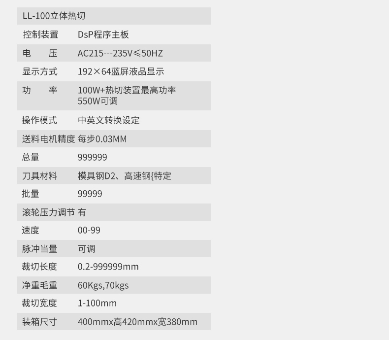 LL-100桌上全數(shù)字智能切斷機(熱切型)/(冷切型) 產(chǎn)品說明: 本機采用全數(shù)字智能控制裝置,按鍵操作,同時可任意設(shè)定切斷長度/數(shù)量、送料速度、且裁切精度準確、耗損少、機型設(shè)計符合人體工學(xué)原理操作簡單,廣泛適用于織帶、拉鏈、...
