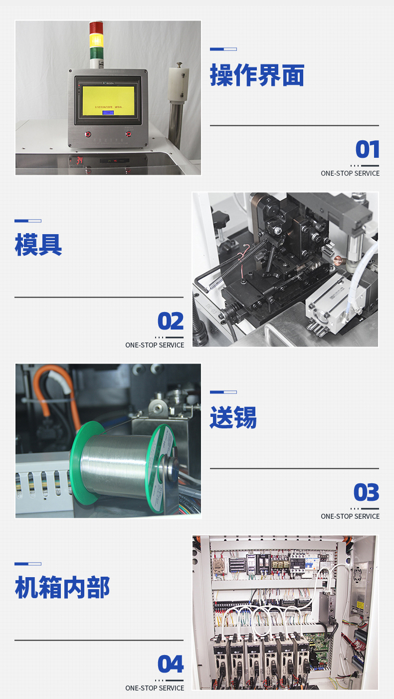LL-556全數(shù)字智能五線單頭打端沾錫機 產(chǎn)品說明: 1.精巧,緊湊的設計,極佳人性化設計,占地面積小。 2.數(shù)字智能觸摸屏和按鍵中文操作菜單易學易用。 3.可儲存100套加工程序,更換工序和材料迅速。 ...